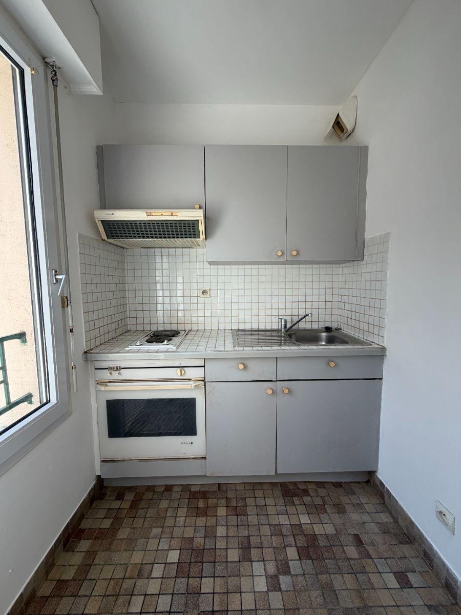 NOGENT-LE-ROTROU (28400), Appartement de type T1, à rénover, idéalement situé à quelques pas de tous commerces. Il se compose d'une entrée desservant une cuisine indépendante, une agréable pièce principale faisant office de salle studio, ainsi qu'une salle de bains avec WC. Un balcon, accessible depuis la pièce de vie, apporte un espace extérieur appréciable. Le bien se trouve au premier sans ascenseur.